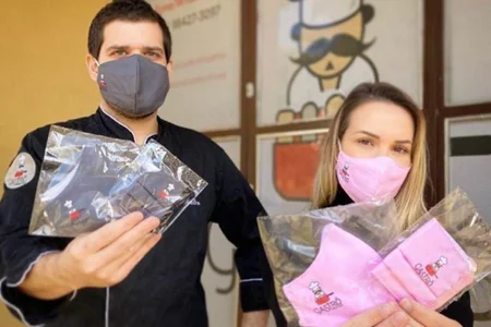 Em tempos de pandemia, várias empresas começaram a dar máscaras e álcool gel de brinde para os clientes. Em especial, as lojas de roupas. Mas é a primeira vez que a coluna vê um pequeno negócio da área de gastronomia implementar o mimo, que cativa o consumidor e também estimula o combate ao coronavírus. O Gastrô Comfort Food lançou a ação nesta semana. A cada 10 ou mais pratos encomendados, o cliente ganha uma máscara de tecido e mais um potinho de álcool gel do tamanho que se carrega no bolso. E o slogan é: "Vamos combater a covid-19 juntos?".
