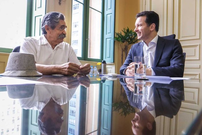 Foram duas horas de conversa na manhã desta quarta-feira (12), no Paço Municipal, em Porto Alegre. De campos opostos na política, Nelson Marchezan (PSDB) e Olívio Dutra (PT) dividiram histórias e experiências de quem já enfrentou ou ainda enfrenta, no caso do tucano, a dura tarefa de comandar o Executivo da Capital do Estado. O convite partiu de Marchezan, que costumava encontro Olívio em eventos tradicionais da cidade, como a procissão de Nossa Senhora dos Navegantes e a Feira Livro, na Praça da Alfândega.