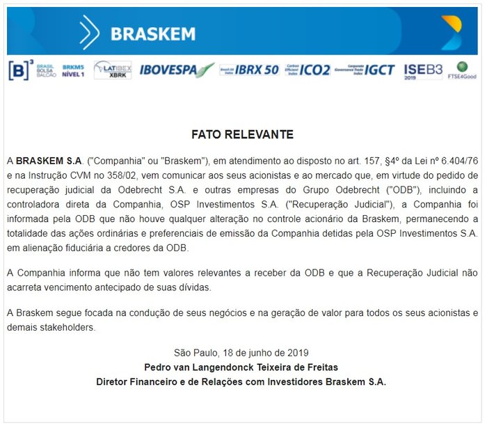 Na terça-feira (19), a Braskem chegou a emitir um fato relevante para esclarecer sobre o seu controle acionário, tal a magnitude que assumiu o debate sobre seu futuro.