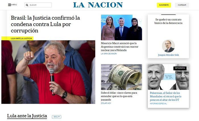 Outro jornal argentino, o Clarín, também traz o julgamento em sua capa: "Duro revés para Lula: ratificam a condenação por corrupção".
