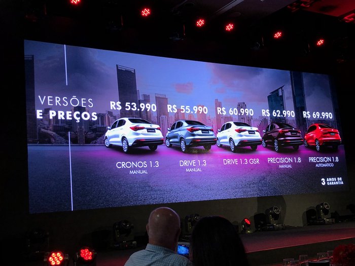O Fiat Cronos custa a partir de R$ 53.990, na versão básica, a R$ 69.990, na topo de linha 1.8 Precision.