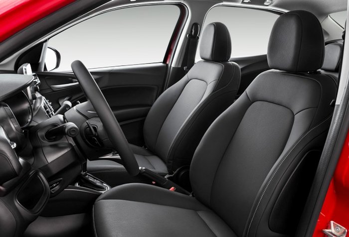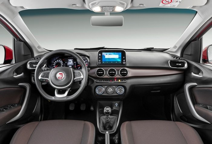 O interior espaçoso e com bom acabamento do sedã remete ao irmão mais velho no revestimento das portas, painel, quadro de instrumentos e detalhes. Só a versão de entrada não tem a central multimídia com tela de 7 polegadas sensível ao toque e interativa com os sistemas Android Auto e CarPlay.