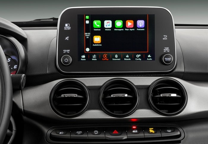 Acrescenta central multimídia Uconnect com tela de sete polegadas sensível ao toque, entrada USB traseira e monitoramento de pressão dos pneus.