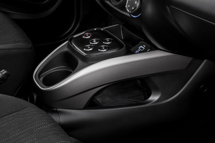 Câmbio automatizado de cinco velocidades e troca sequencial de marchas por aletas atras do volante, mais sistema start/stop (desliga e liga o motor), controle eletrônico de velocidade, estabilidade e tração, vidros elétricos traseiros, retrovisores externos elétricos com sinalizadores, assistente de partida em rampa, apoio de braço para o motorista.