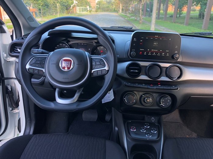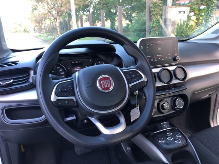 - Gostei do revestimento interno com materiais de texturas diferentes que deu um toque diferente de sofistiação ao Cronos. Também da central multimídia UConnect com tela de sete polegadas sensível ao toque, com fácil interação com os sistemas Android Auto e Apple Car Play, sistema de áudio e câmera de ré.