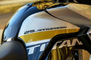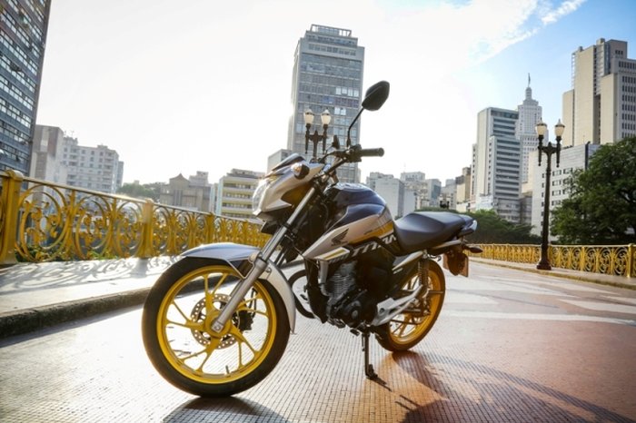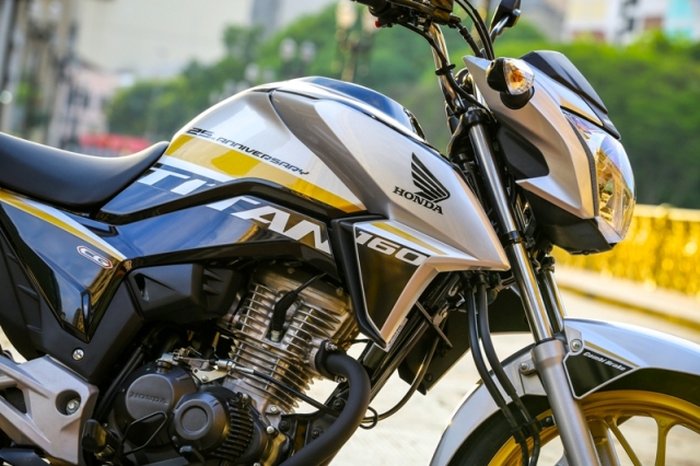 A pintura e grafismos especiais combinam as cores dourado, prata e preto e estão entre os detalhes exclusivos da série especial 25 anos, baseada na atual CG 160 Titan.