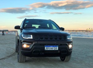 Com perfil baixo, os pneus sentiram as irregularidades em trechos ruins. Na beira da praia, o Compass S rodou com o modo Auto, um dos quatro disponíveis, dispensando recorrer ao modo Sand (areia). Os outros dois são o lama e neve, mas a versão topo de linha só encara trilhas leves ou médias pelo perfil baixo dos pneus.