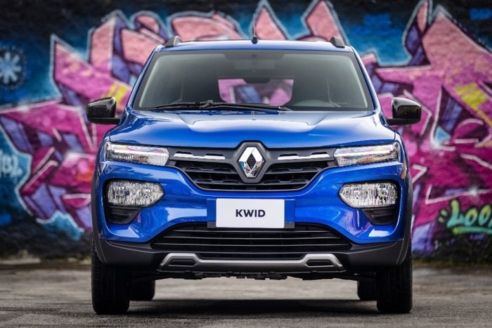 A frente do Kwid remete ao visual dos utilitários esportivos. Ficou mais robusta com os novos para-choque, grupo óptico e grade. As luzes diurnas (DRL) e a assinatura em LED ficam acima dos faróis redesenhados com dupla parábola e as entradas de ar do para-choque foram ampliadas.