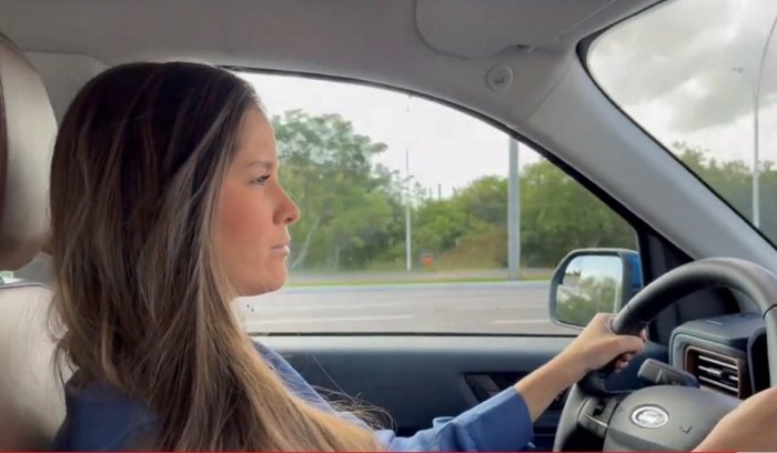 A primeira impressão da jornalista Priscila Nunes que comigo testou o Maverick foi “uouu”, que carro diferentão, pela cor, pelo interior com cores claras e por último pelo enorme motor.