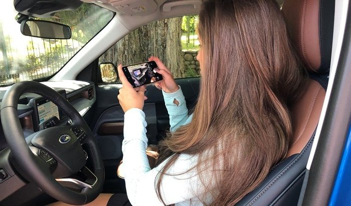 O aplicativo FordPass Connect permitiu o acesso e o comando remoto por celular à diversas funções do carro. Testamos a partida remota do motor, o acionamento do ar-condicionado, a trava das pontas e a localização da picape. Também conferimos a autonomia e o nível do combustível.