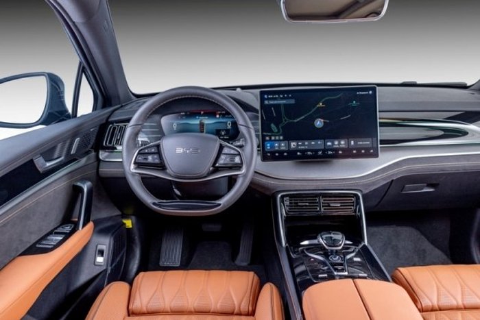 Com sete airbags, os de cortina protege também os passageiros da terceira fileira de bancos. O Tan EV conta recursos de apoio à condução e à segurança como o sistema Adas, câmera de 360°, head up display, frenagem automática de emergência, alertas de tráfego cruzado e ponto cego, saída e permanência em faixa, entre outros.