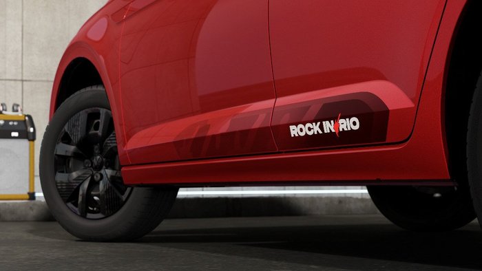 O teto, as maçanetas, os retrovisores, as calotas e a faixa que liga as lanternas na tampa traseira em preto brilhante personalizam a série especial. Também o logo no capô, o adesivo Rock in Rio na parte inferior das portas e na traseira completam o visual exclusivo.