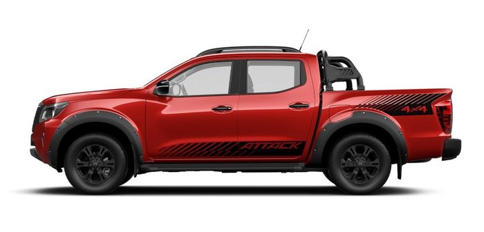 A picape média Nissan também ganhou novos grafismos. Os adesivos aplicados no capô são inspirados no design tradicional das primeiras gerações da Attack e estão ainda em toda extensão das laterais da caçamba. Os que ficam na parte inferior das portas dianteiras e traseiras também são inéditos.