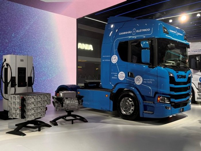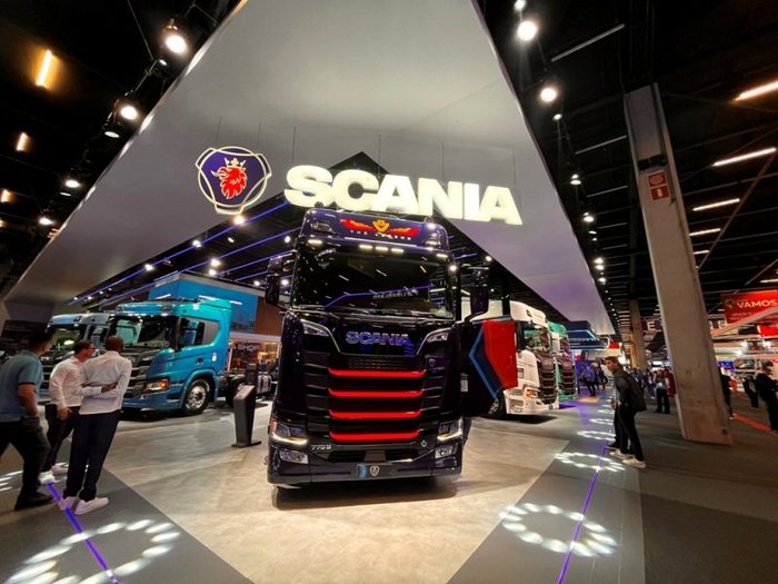 O caminhão elétrico 30 G 4x2 foi a principal tração do estande de 2,8 mil metros quadrados da Scania que contou com uma área exclusiva com modelos fora de estrada. A sueca, que confirmou novo ciclo de investimentos de R$ 2 bilhões no período 2025/28, mostrou 18 veículos e um novo motor para geração de energia.