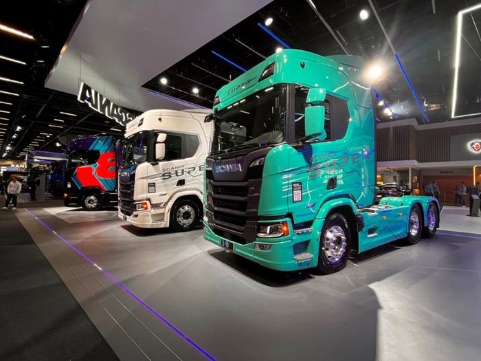A sueca mostra também configurações dos P 280 6x4 XT (Light Construction), semipesado P 280 6x2, o 460 R 6x2 Super, 500 RH 6x4 Super B100 (100% biodiesel) e o G 460 6x2 (movido a gás/biometano) com autonomia de 650 quilômetros.