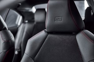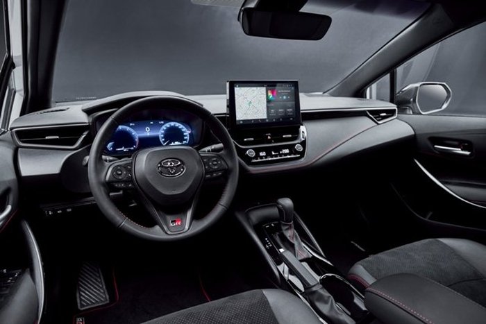 Detalhes como volante, botão Start/Stop, chave inteligente com emblema GR e costuras em vermelho nos bancos painel, laterais das portas e console valorizam o interior da proposta da versão esportiva.