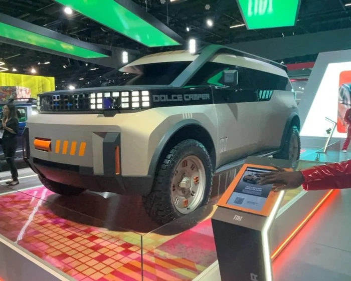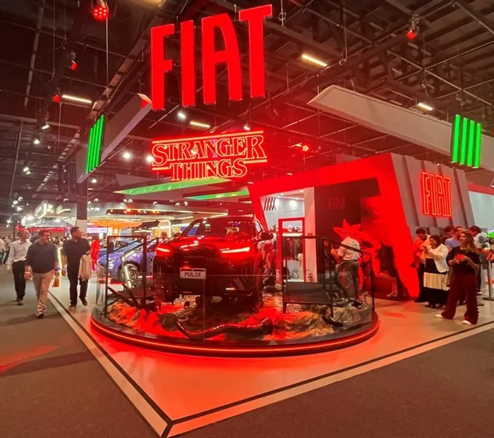 Pulse Abarth Stranger Things divide com conceito Dolce Camper a atenção no estande da Fiat, a líder de produção e venda de veículos no país há cinco anos. O carro-conceito traduz a visão da marca para o futuro do design e da mobilidade. Mostra ainda o Abarth 600e Scorpionissima, esportivo elétrico e sua linhas de veículos nacionais.