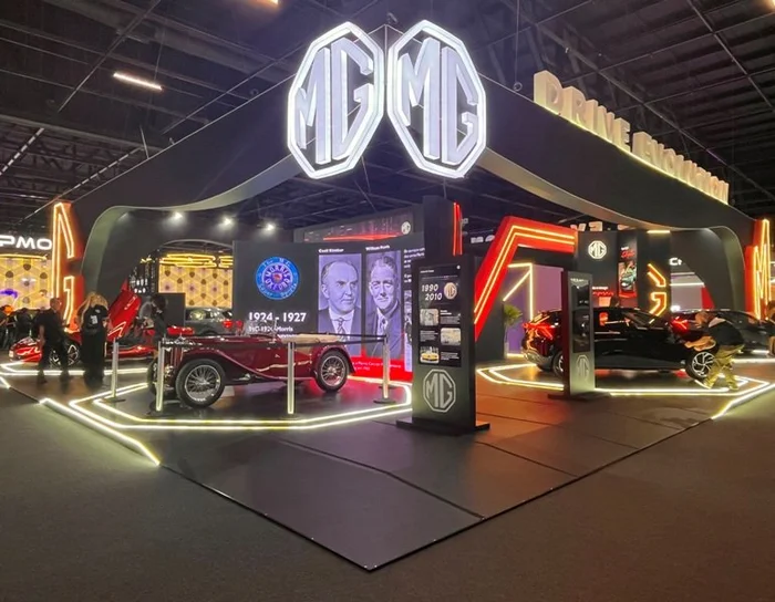 O esportivo Cybester tem espaço especial no estande da MG Motor. O roadster com motor de 510 cv, puxa a gama da marca que expõe os elétricos MG4 e MG5 nas configurações Comfort, Luxury e X Power. As atuais 24 revendas chegarão a 70 em 2026.