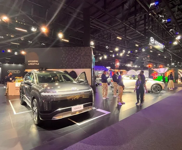 O utilitário esportivo de sete lugares elétrico Ioniq 9, que está em avaliação para o mercado brasileiro, divide com o elétrico Ioniq 5, o híbrido Kona, o Palisade, o Creta e os modelos de competição da Copa HB20, o estande da Hyundai.