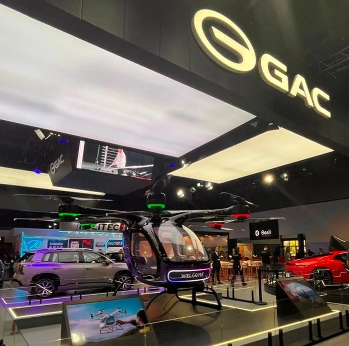 O carro voador GOVY AirCab marca a presença da GAC no Anhembi, apenas em exibição durante o evento ao lado dos utilitários esportivo elétrico premium Hyptec HT, do hibrido EV GS4, dos elétricos medios Aion V e Y e do sedã médio elétrico ES.