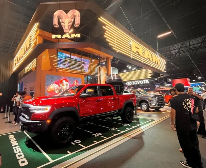 A nova Dakota, que será lançada no Brasil no começo de 2026 é o destaque da Ram. As picapes norte-americanas 1500 RHO, versão aventureira de alto desempenho, e a 3500 com rodado traseiro duplo, que pode rebocar quase 15 toneladas também estão no estande.