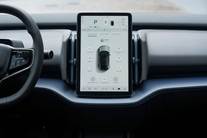 A central multimídia com tela de 12,3 polegadas tipo tablet concentra os comandos e informações do veículo, incluindo os instrumentos. Interativa com Android Auto, Apple CarPley e aplicativos sem fio, traz o Google Assistant e mostra imagens da câmera 360º.