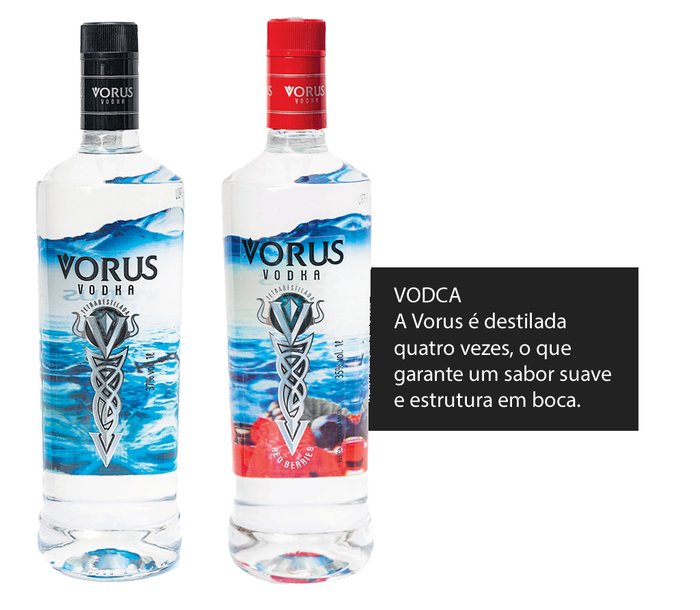 Lançada há cerca de três meses, a vodca Vorus, tetradestilada, é o mais novo produto da vinícola Salton. A ela somam-se o gim Virga, produzido com ingredientes brasileiros em um pequeno alambique no interior de São Paulo, e a sidra Épo, elaborada pela Morada Cia. Etílica, de Curitiba, em parceria com uma vinícola de Caxias do Sul e disponível em três sabores diferentes.