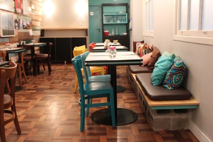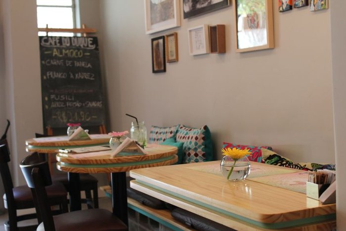 O Café é um sonho de um casal. Ele designer, ela frequentadora assídua de cafés por aí afora. Resultou nessa belezura de lugar. Fofo demais.