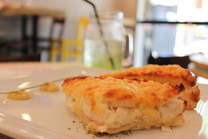 A minha fome era moderada. Mas como uma food lover, sempre que estou à frente de um cardápio novo, quero provar de tudo. Adorei os ingredientes do Sanduíche Visconde: presunto, queijo, molho branco, queijo gruyère e palmito no pão de forma branco. E o Visconde veio. Com queijo gratinado gentem. Me diz: o que não é bom gratinado?