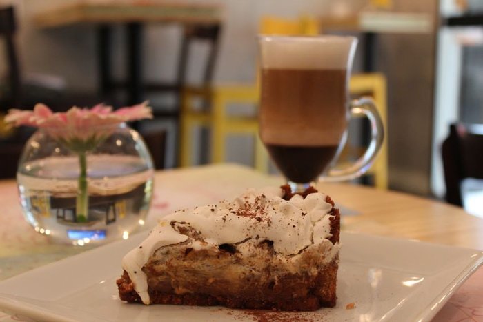 Para um singelo lanche da tarde eu já estava na linha do exagero, mas alguém me disse que a torta de banana com doce de leite é imperdível. Não se diz uma coisa assim para alguém como eu. A esteira vai ouvir minhas lamentações mais tarde.