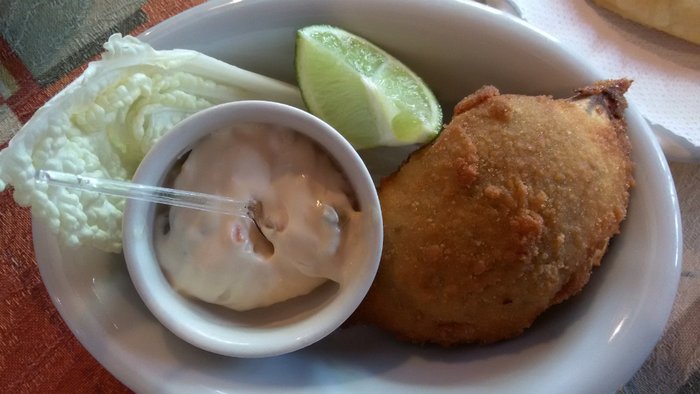 Voltando para a mesa, como estávamos com uma fome de leão, pedimos as entradas. Uma bela casquinha de siri, com recheio de pura carne, sem aqueles pedacinhos de casca que incomodam na hora de mastigar.