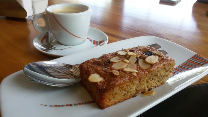 Para arrematar, um cafezinho tradicional e um pedaço da torta integral de cenoura com amêndoas – a aparência pode não ser dar mais encantadoras, mas estava bem fresca e saborosa, levemente aquecida.