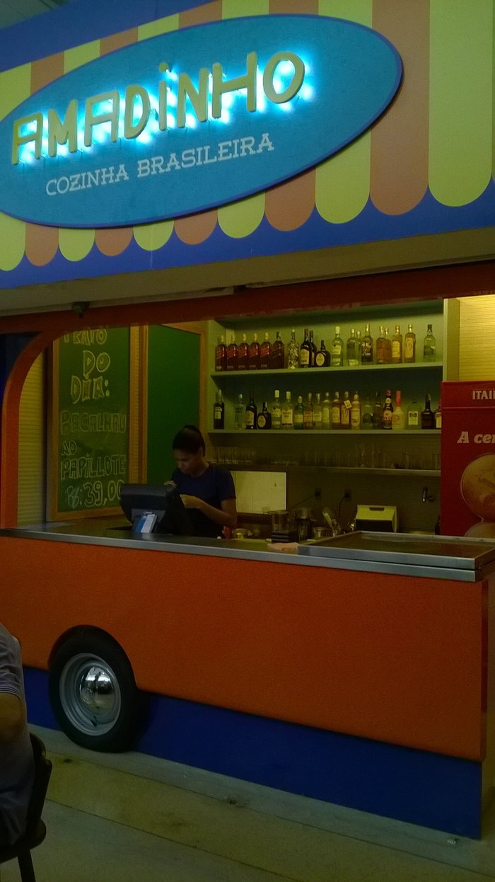Aí, claro, com a disponibilidade de espaço, chegaram alguns boxes interessantes. Um deles é o Amadinho – Cozinha Brasileira, parceria dos chefs Edinho Engel e Gabriel Lobo.