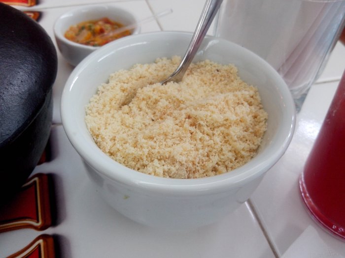 Seguindo a indicação do atendente, pedimos uma das especialidades da casa, a vaca atolada. Ela chega à mesa servida na panelinha de barro e tem uma porção individual que satisfaz bem.