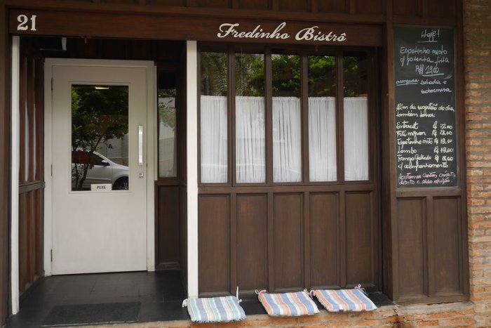 Sabe aquela sensação de passar na frente de um lugar, achar bonitinho e se jogar sem saber o que é? Pois foi bem assim que o Fredinho Bistrô aconteceu no meu dia. Em uma calma ruela do bairro Floresta, bem ao lado da Igreja São Pedro, o lugar já encanta na fachada com almofadinhas no chão pra quem tiver que esperar vagar uma mesa no pequenino bistrô.