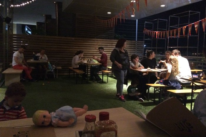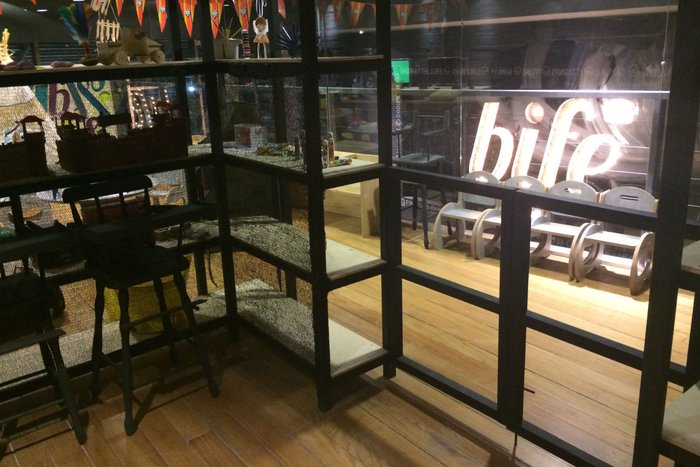 Gosto muito da primeira unidade do Bife, no bairro Rio Branco. Então, quando fiquei sabendo que outra unidade seria aberta na Zona Sul, lá no BarraShoppingSul, tratei de ficar atenta para o dia da inauguração. Não surpreende que eu tenha ido na primeira semana, né? Já estava me dirigindo para lá quando uma amiga mandou um Whats me convidando para ir a outro lugar. A minha resposta foi: "Eu topo, mas nós vamos a outro lugar. Vamos no Bife do Barra?". Ela, outra fã da hamburgueria, soltou um "óbvio" via Whats. Combinamos de em meia hora estarmos lá, munidas de marido e filhotas.