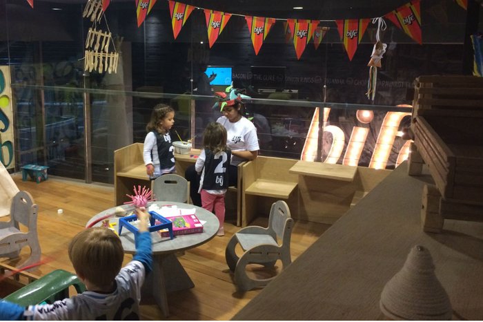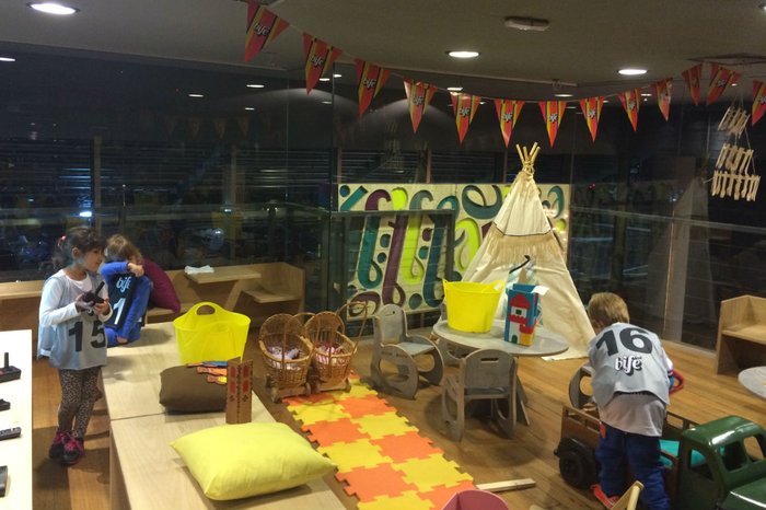 Então, você sobe um lance de escadas e encontra o paraíso de pais de filhos pequenos: uma enorme área kids.