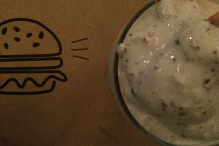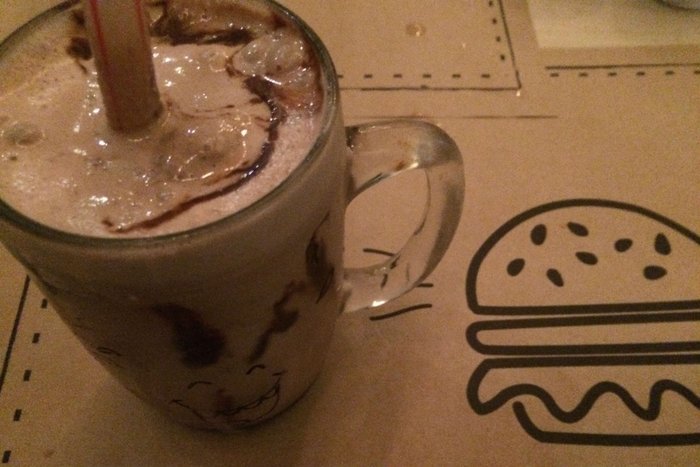 A Cássia pediu um Milk-Shake de chocolate com calda de chocolate no tamanho kids. Eu provei e provaria de novo.