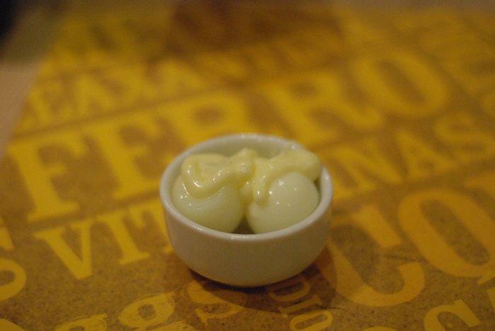 Já de cara, ovinhos de codorna pra abrir o apetite.