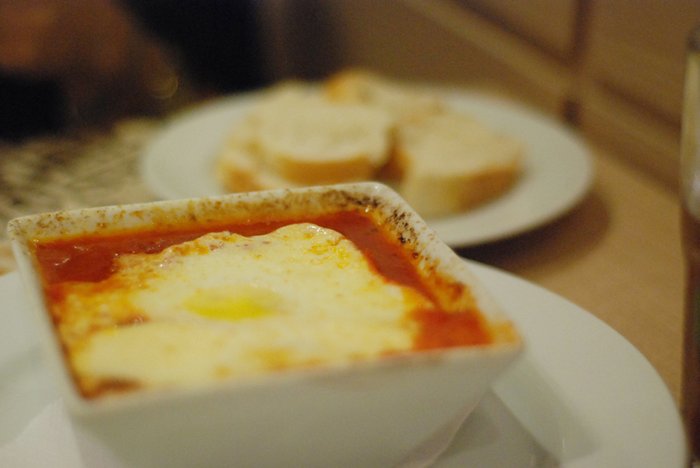 O primeiro pedido foi o Tomates Revueltos, com molho encorpado de tomate temperado assado com ovo e servido com pão e pesto. Duas coisas que amo: tomate e ovo. Não poderia dar errado. Super saboroso, tipo uma sopa de tomate com o ovo cozido no meio. Aprovadíssimo.