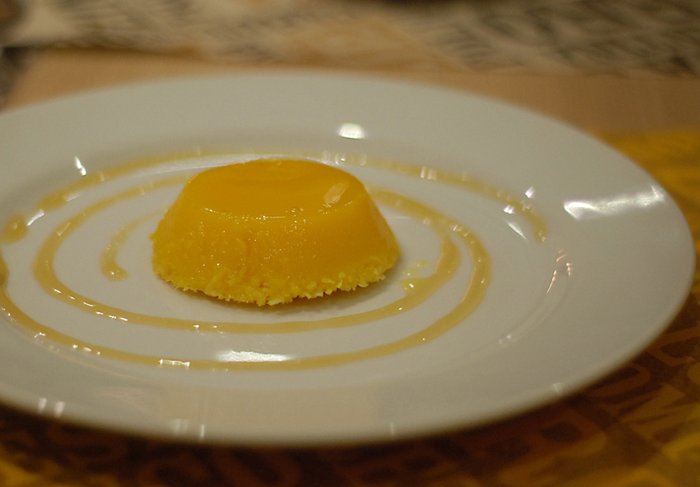 Juro que não sei como, mas ainda teve espaço pra uma sobremesa. Um delicioso quindim! Quase todas as sobremesas dessa vida levam ovo, mas no quindim ele é o astro principal. Aplaudimos.