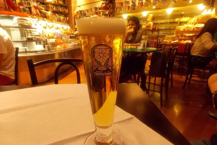 Depois de quase 1 hora de espera, fomos para a nossa mesa (o que nem fez muita diferença, pois estávamos muito bem acomodados no bar - a única diferença foi a luz!). Um garçom fica passando entre as mesas com uma bandeja lotada de chopes geladíssimos, como resistir?