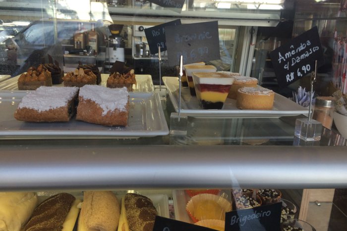 A continuação da tentação ocorre no balcão dos doces. Deem só uma olhada e percebam como é difícil sair de lá sem nenhum deles. Por ali, também podem ser compradas pastinhas (de azeitona preta, tomates secos e grão de bico) para passar no pão.