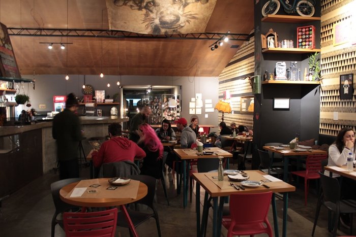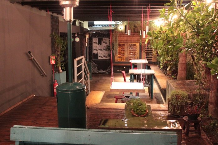 O pé direito é altíssimo. O lugar tem a estrutura parecida com a de um grande galpão. Cheio de detalhes de uma decoração super cool. Depois fiquei sabendo que dois dos sócios são publicitários. E criativos.