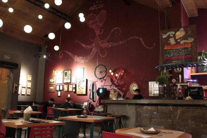 Otras cositas que tem do cardápio: Burger Madre Fucker, Sala Drone, Papas de la puta madre. Atenção para os burgers que chegam na mesa em formas de alumínio (demais! Vi na mesa do vizinho). E otras cositas que rolam no Madre Mia: exposição de arte, feiras de roupas com estilistas locais, música, muita música. Tudo isso dá para ficar sabendo no Face deles (aqui) que eu não vou seguir de raiva de estar longe (to de brinks). Ah! Os quadros nas paredes estão todos a venda e são demais.