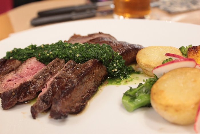 O prato principal era bife de vazio, pesto de salsa e horta orgânica. Tiras de bifinhos bem no ponto que gostamos. Nesse prato dou o mérito para o pesto que estava incrível.