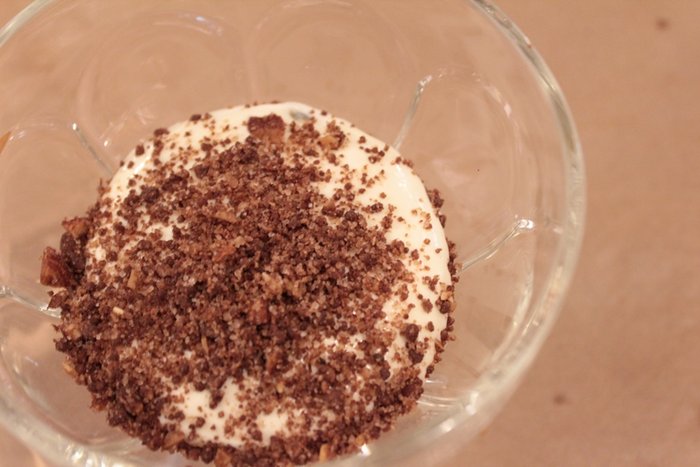 Voltamos a última etapa do Al Punto, o postre. Mousse de chocolate branco, maracujá e farofa de amêndoas. Tava bom, nada espetacular e também já estávamos mega hiper satisfeitos.