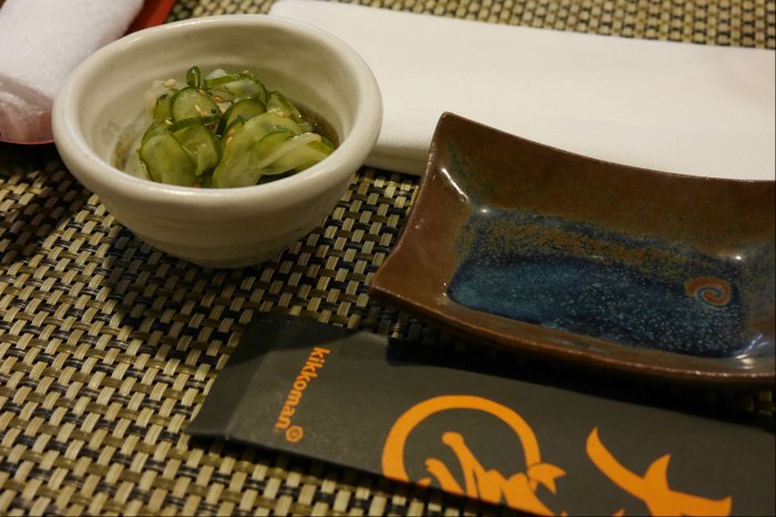 Logo que a Pati chegou, o garçom nos trouxe o sunomono, a clássica saladinha de pepino japonês e tempero adocidado.