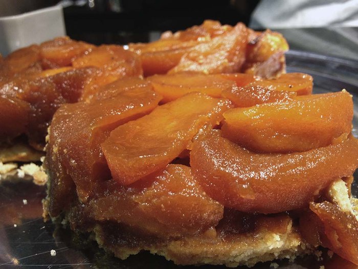 Após algum tempo por lá entretida nos caminhos percorridos pelo espanhol, aproveitei a “viagem” pela Europa e dei uma esticada na França e pedi um tarte tatin. As maçãs estavam primorosamente caramelizadas e a massa guardava, em sua aparêcencia sequinha, a surpresa suculenta e cremosa que se transforma quando colocada na boca.