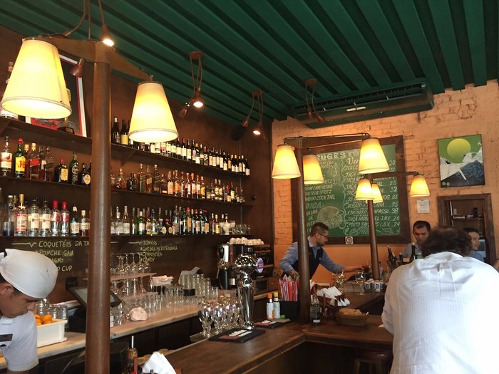 Uma das especialidades da casa são as bebidas. Três grandes prateleiras cobrem a parte de trás do bar. A carta de vinhos do restaurante é generosa.